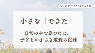 今の気持ちから読む 子どもの小さな“できた”を見つけた日々 子どもの小さな行動に成長を感じた日々をまとめています。日常の中で見つけた「できた」や、親の気づきをやさしく記録したページです。 2025.12.27 今の気持ちから読む