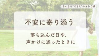 今の気持ちから読む 不安な気持ちに寄り添った日々 子どもの不安や落ち込みに出会った日々と、そのとき選んだ声かけをまとめました。正解を教えるのではなく、気持ちに寄り添った記録です。 2025.12.27 今の気持ちから読む